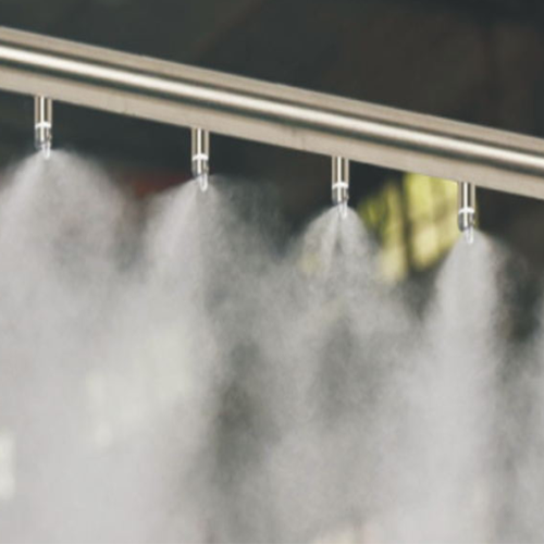 1) 霧 細:高壓噴霧噴嘴每秒能產生50億個霧滴,霧滴的直徑僅為5~30μm, 抑塵效果佳。使用噴霧系統時其目的在于使噴霧系統制造的霧顆粒未接觸到地面以前就能夠蒸發,能達到此目的的方法是將霧顆粒變為愈小愈好。霧顆粒越小,就霧顆粒的數量而言,霧顆粒的表面積愈大,結果霧顆粒蒸發率愈高,所能達到的 抑塵效果愈好。